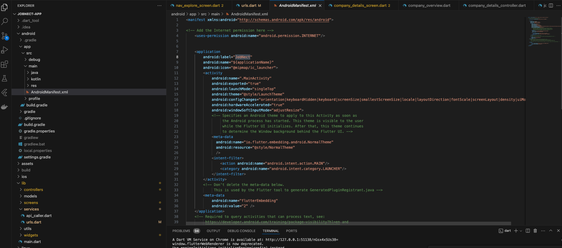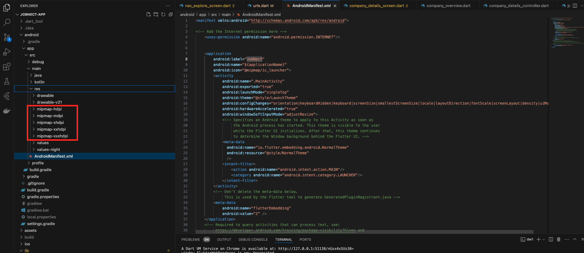 • After you make all your changes and customizations save all your project, Open the console, navigate to your project folder and execute the following command to build your app flutter build apk --release
