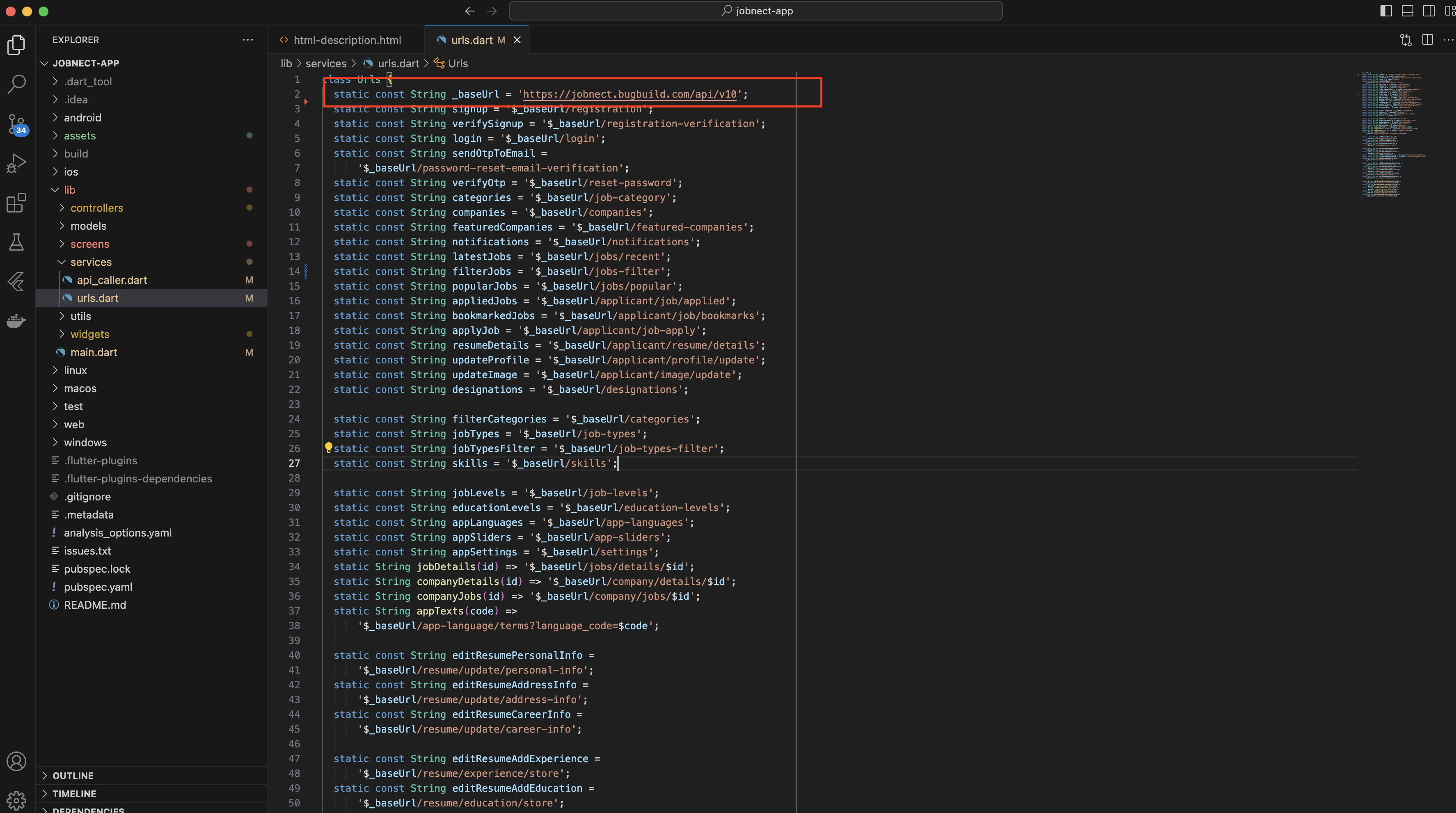 • project/lib/services/urls.dart and change the _baseUrl to connect your mobile app with your admin panel & website