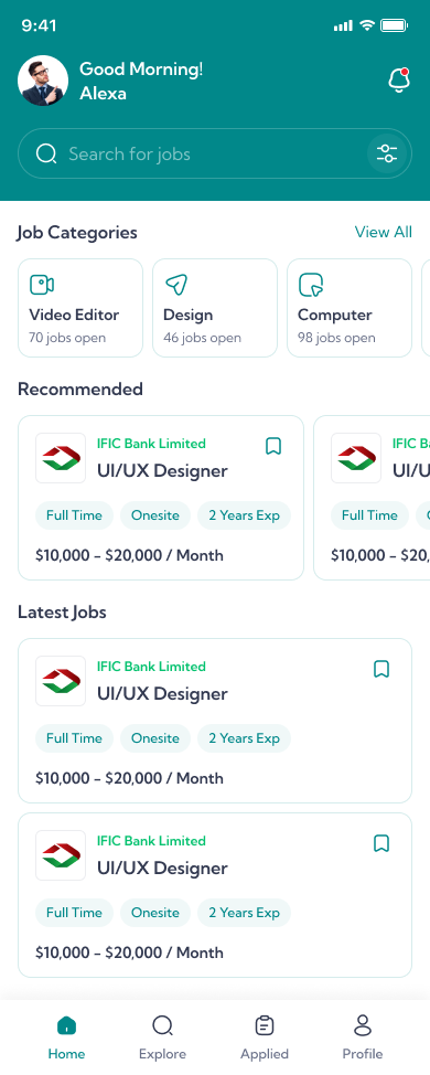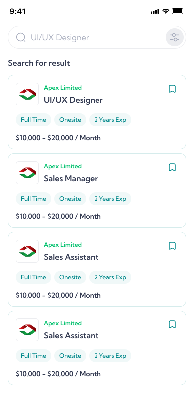 • This screen is use for all jobs, explore jobs, search jobs, filtering jobs show.