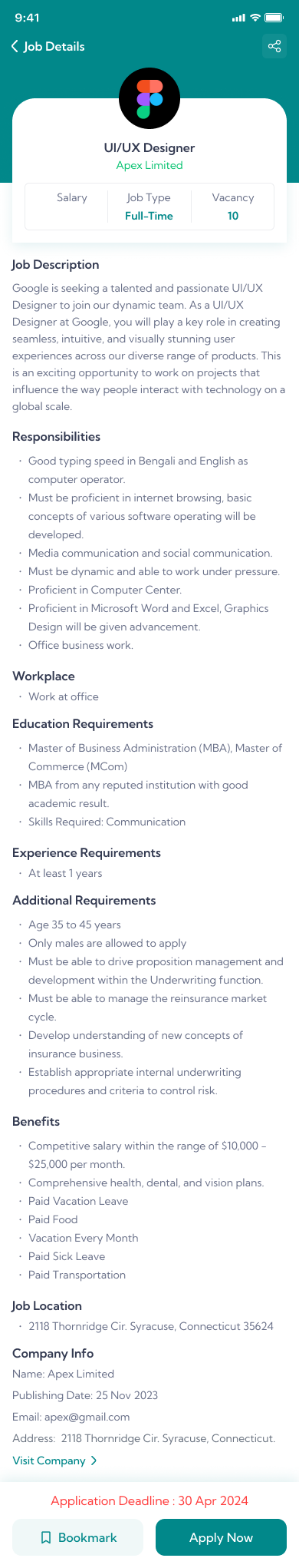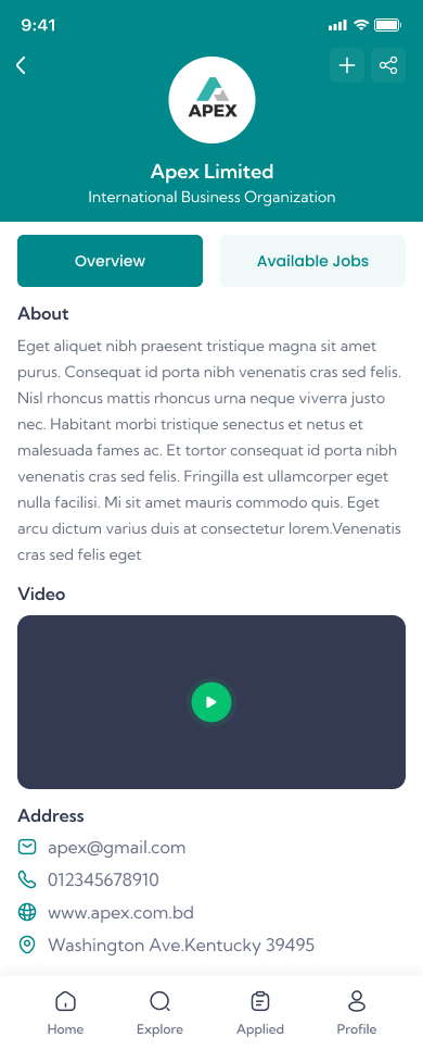 • This is job details screen, we can show full details of job which admin & company can upload from their panel.